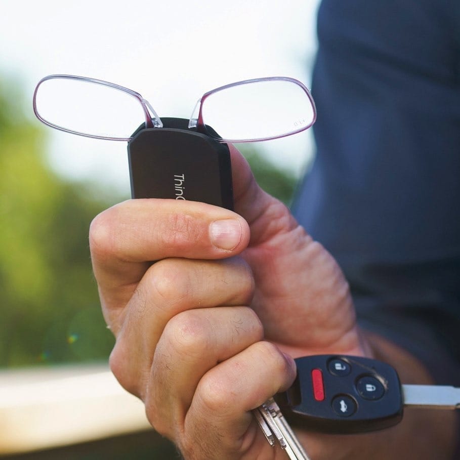 רוביינו לוקחים את מחזיק המפתחות איתנו לכל מקום , אז למה לא לחבר להם את משקפיי הקריאה שלנו? כך שאם מחזיק המפתחות איתנו , גם משקפיי הקריאה שלנו יהיו איתנו. משקפיי הקריאה המתקפלים של Thinoptics , איכותיים וגמישים , דקים יותר ממטבע וקלים מאד , נכנסים בקלות לתוך מחזיק המפתחות שלהם וכך מקבלים עוד פתרון המאפשר לשמור על משקפי הקריאה קרובים וזמינים בכל רגע ובכל מקום ומקטין את הסיכוי לשכוח או לאבד אותם.